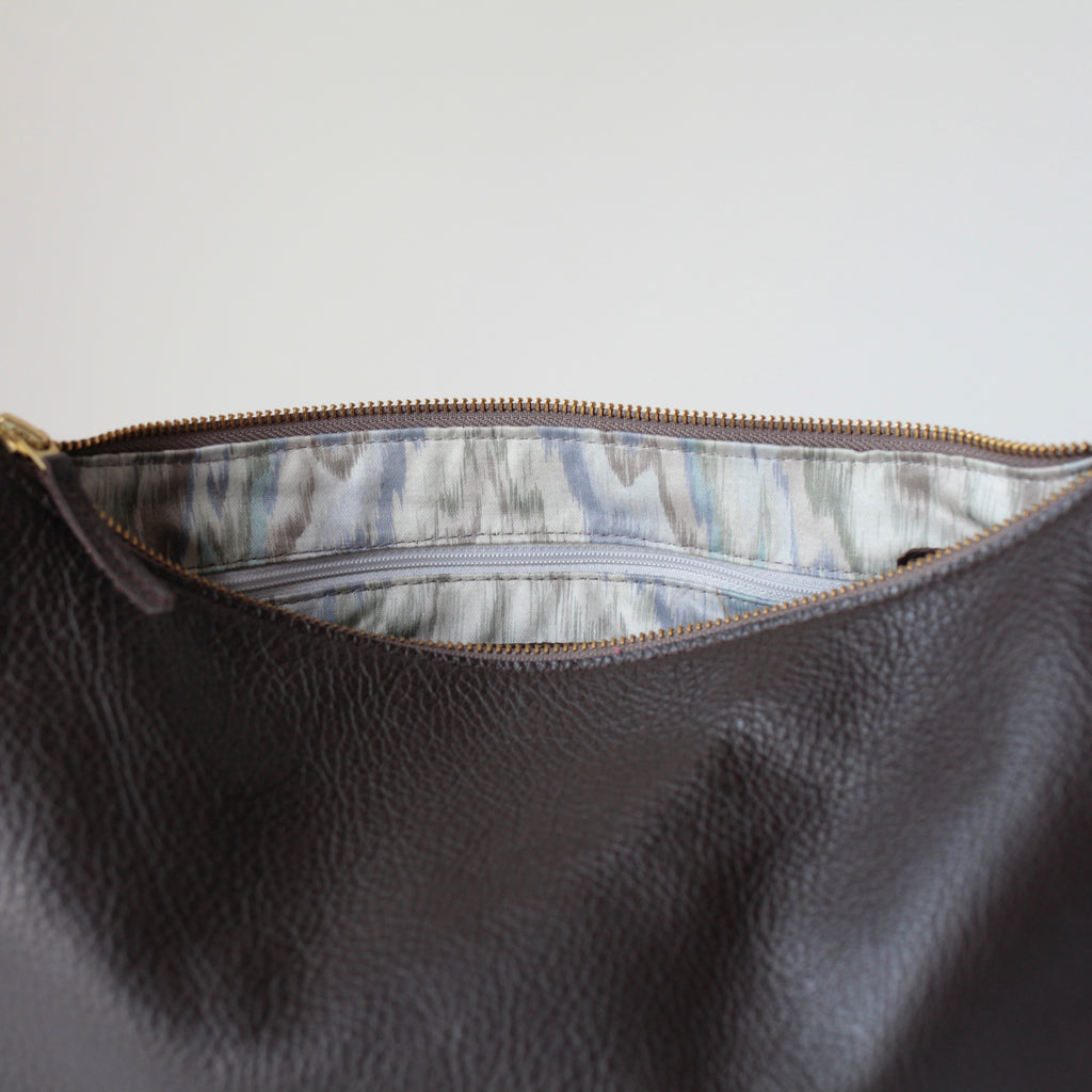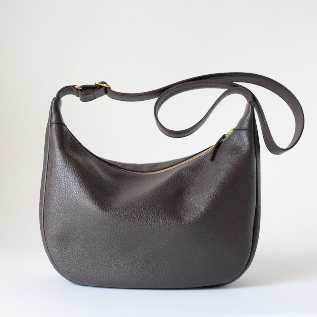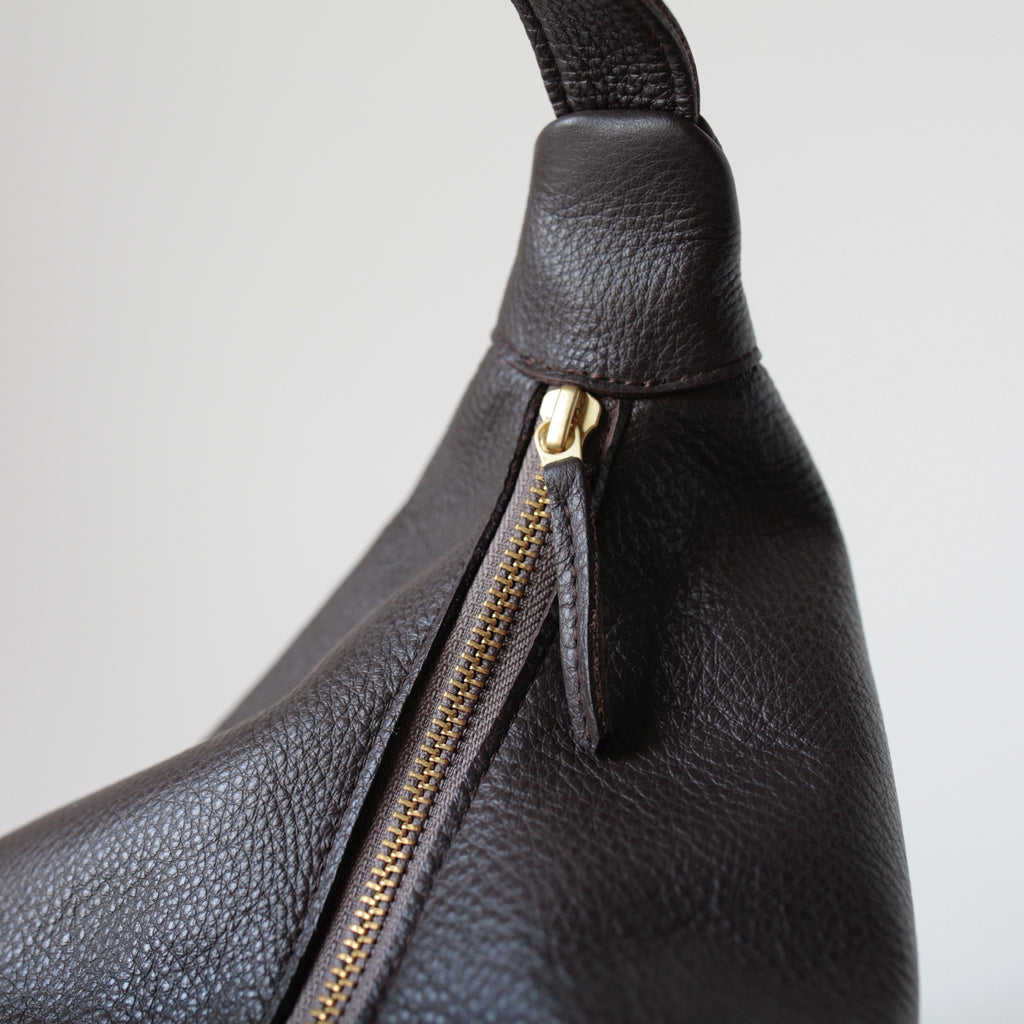 Schlicht, zeitlos und doch ein Statement: Dieser handgefertigte Lederbeutel in Dunkelbraun verbindet minimalistisches Design mit höchster Handwerkskunst. Gefertigt aus natürlich genarbtem italienischem Rindsleder überzeugt die Tasche durch ihre feine Haptik, robuste Struktur und ihr elegantes Erscheinungsbild. Jedes Stück wird in meinem Berliner Studio individuell nach Bestellung genäht – so erhältst du kein Massenprodukt, sondern ein echtes Unikat „Made in Germany“.