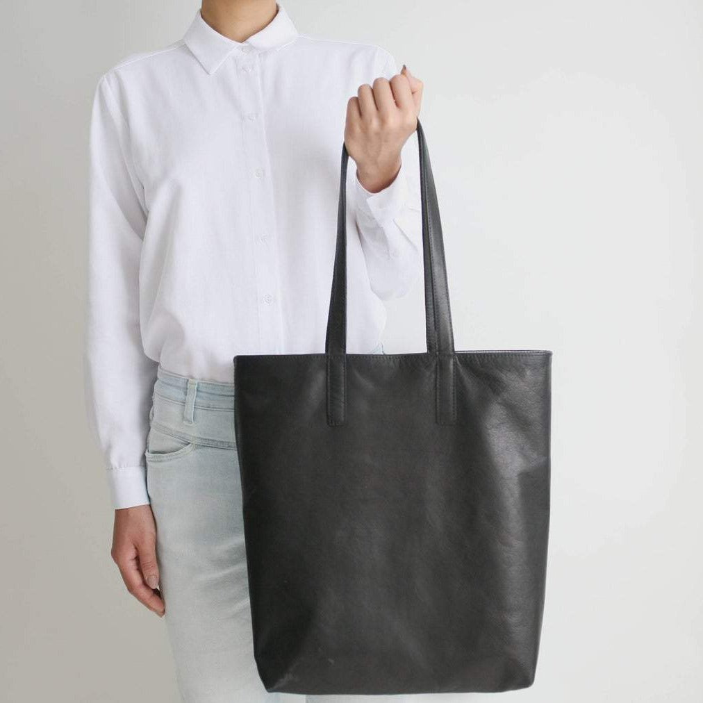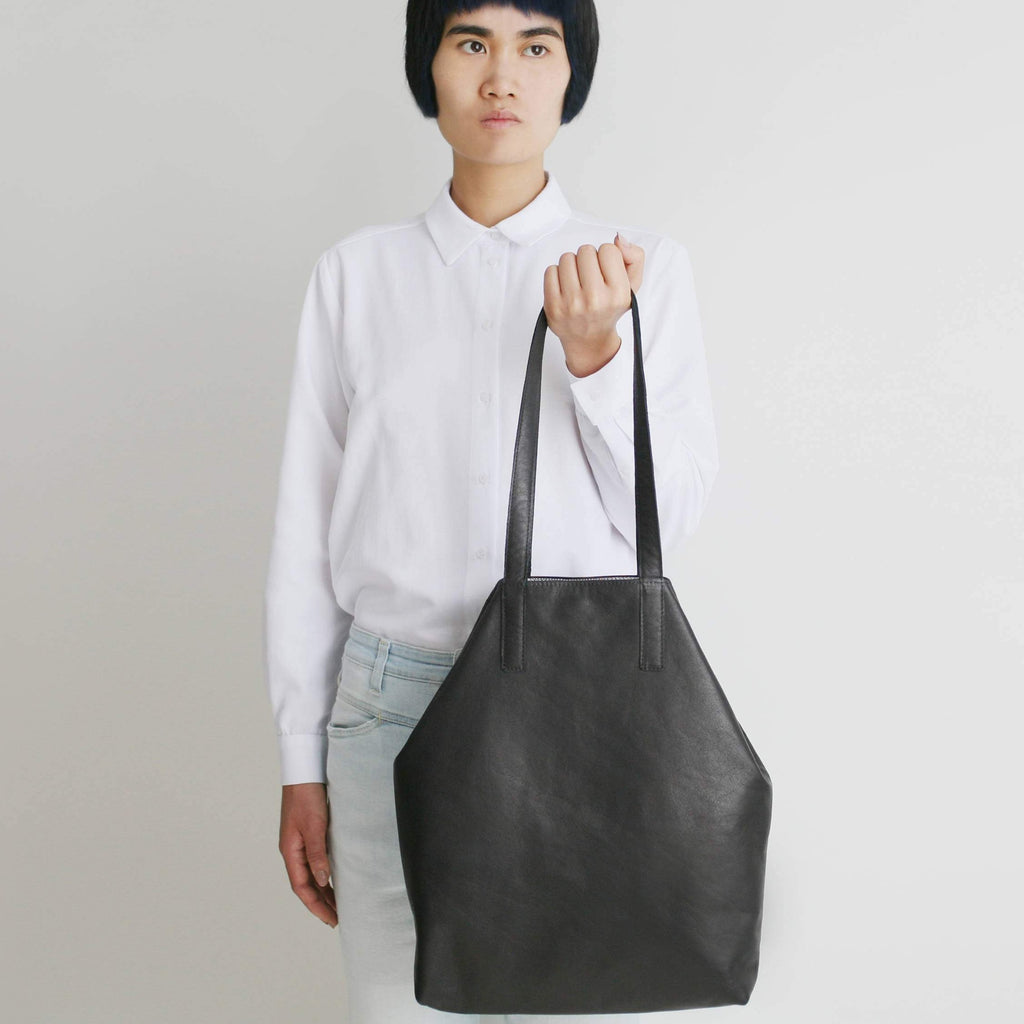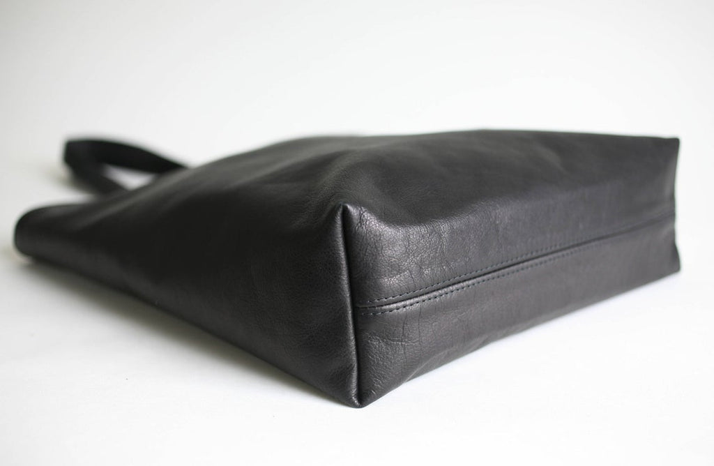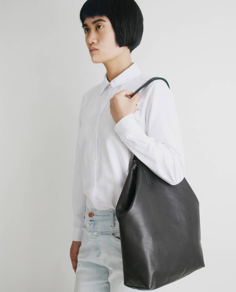 Sac à bandoulière léger comme une plume en cuir de vachette noir ultra doux.